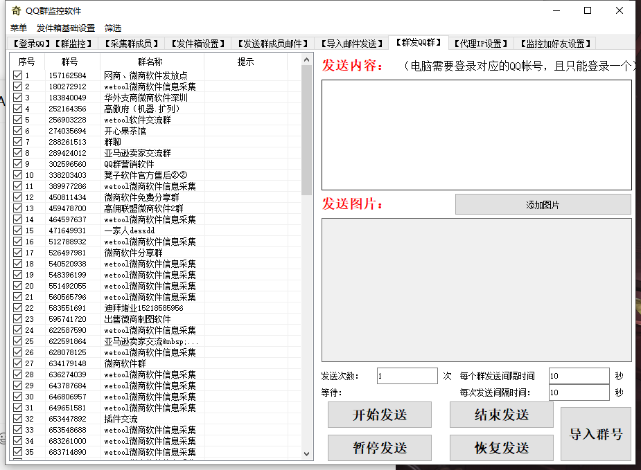 当前位置:首页QQ营销 奇迹QQ群监控偷人群发邮件----测试卡 奇迹QQ群监控偷人群发邮件q群监控,采集导出群成员,发件箱设置,发送群成员导入邮箱发送,发送qq群,监控加好友,代理ip防屏蔽https://xinning-chuping.lanzouu.com/b011iu80j 商品介绍