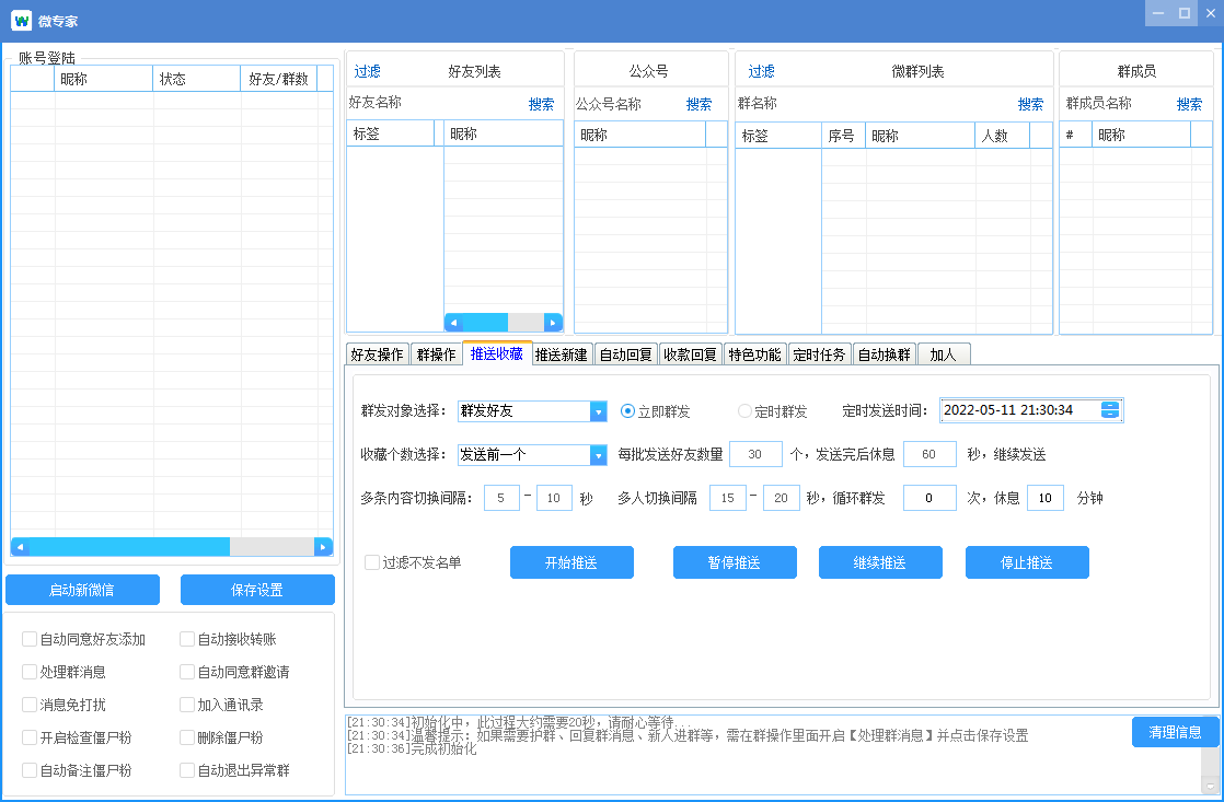 22、定量发送信息,定时重置任务(适应腾讯规则)不检测不封号。