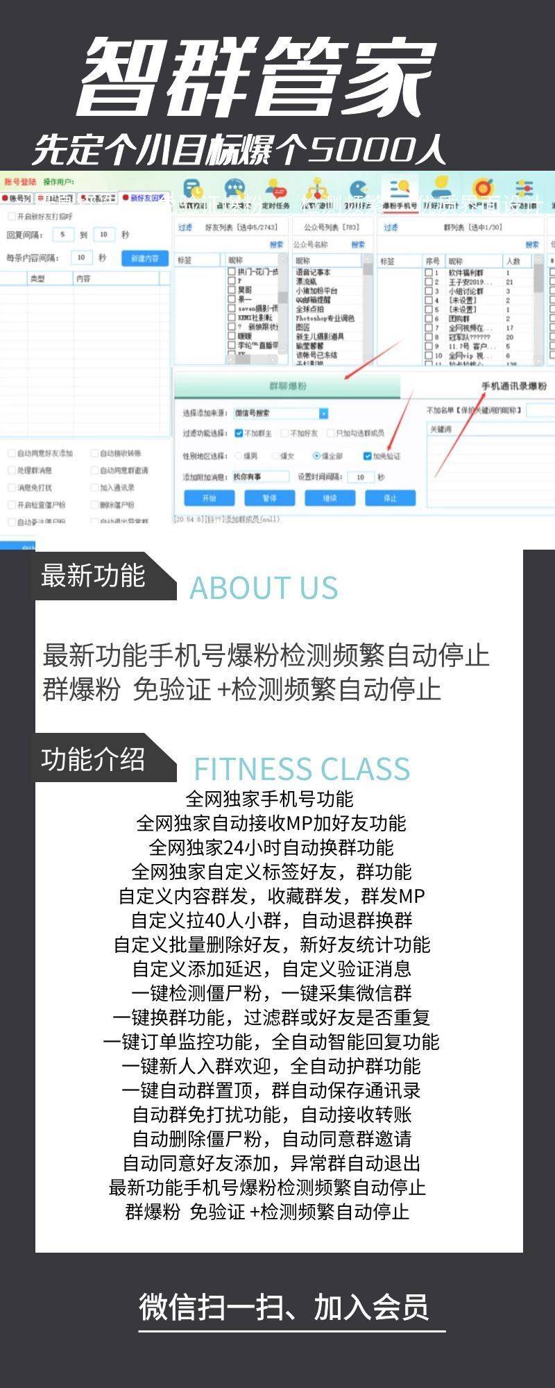 1.独家爆粉功能-支持自定义勾选群